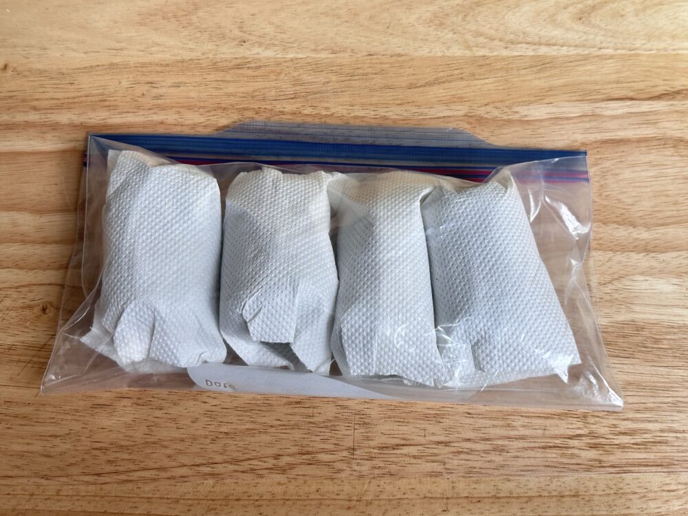2.一つずつキッチンペーパー等で包む