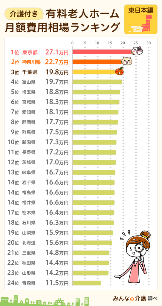 参考:介護付き有料老人ホームの月額利用料ランキング<東日本編>